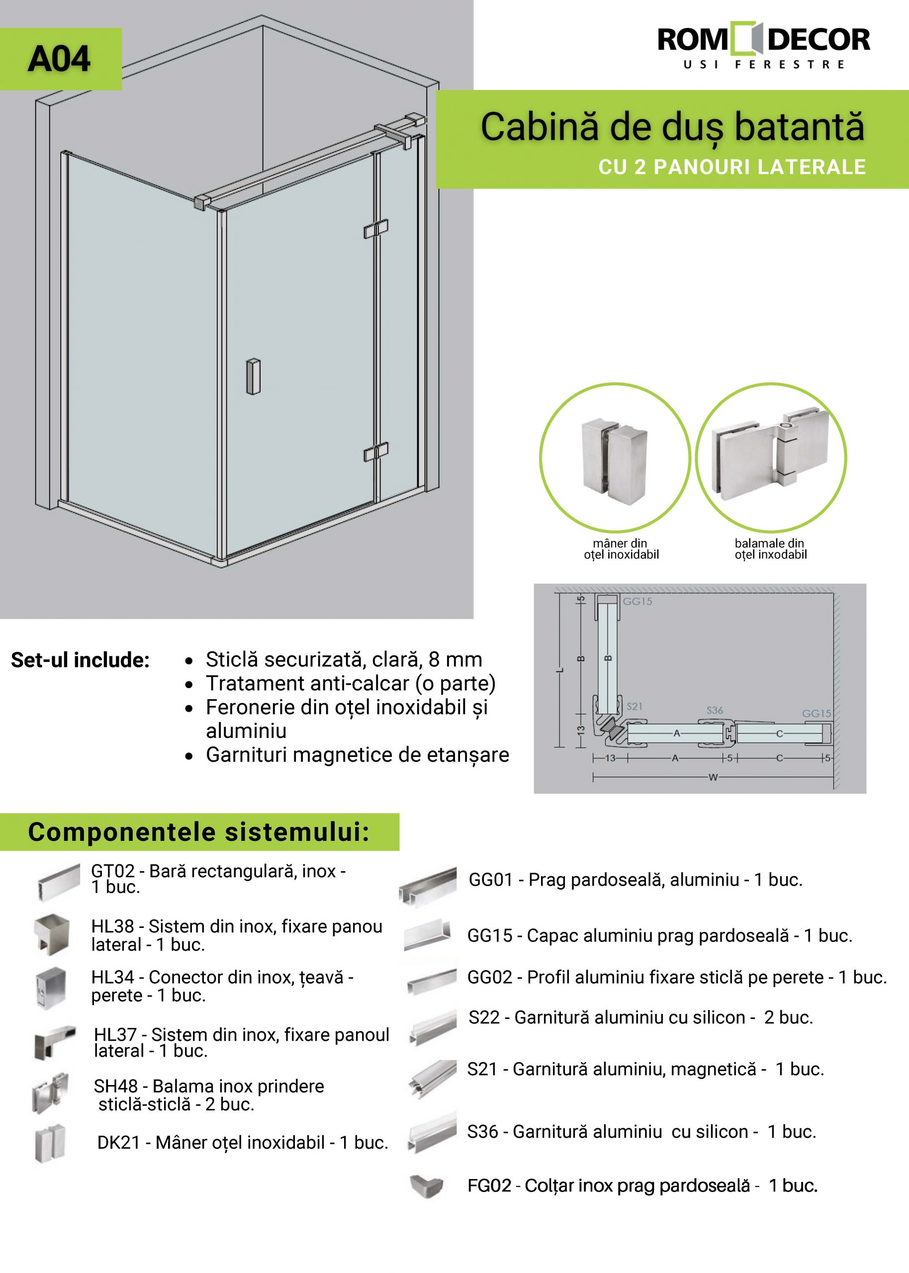 Cabina dus batanta panouri laterale A04 | Cabina dus DUSRMDA04