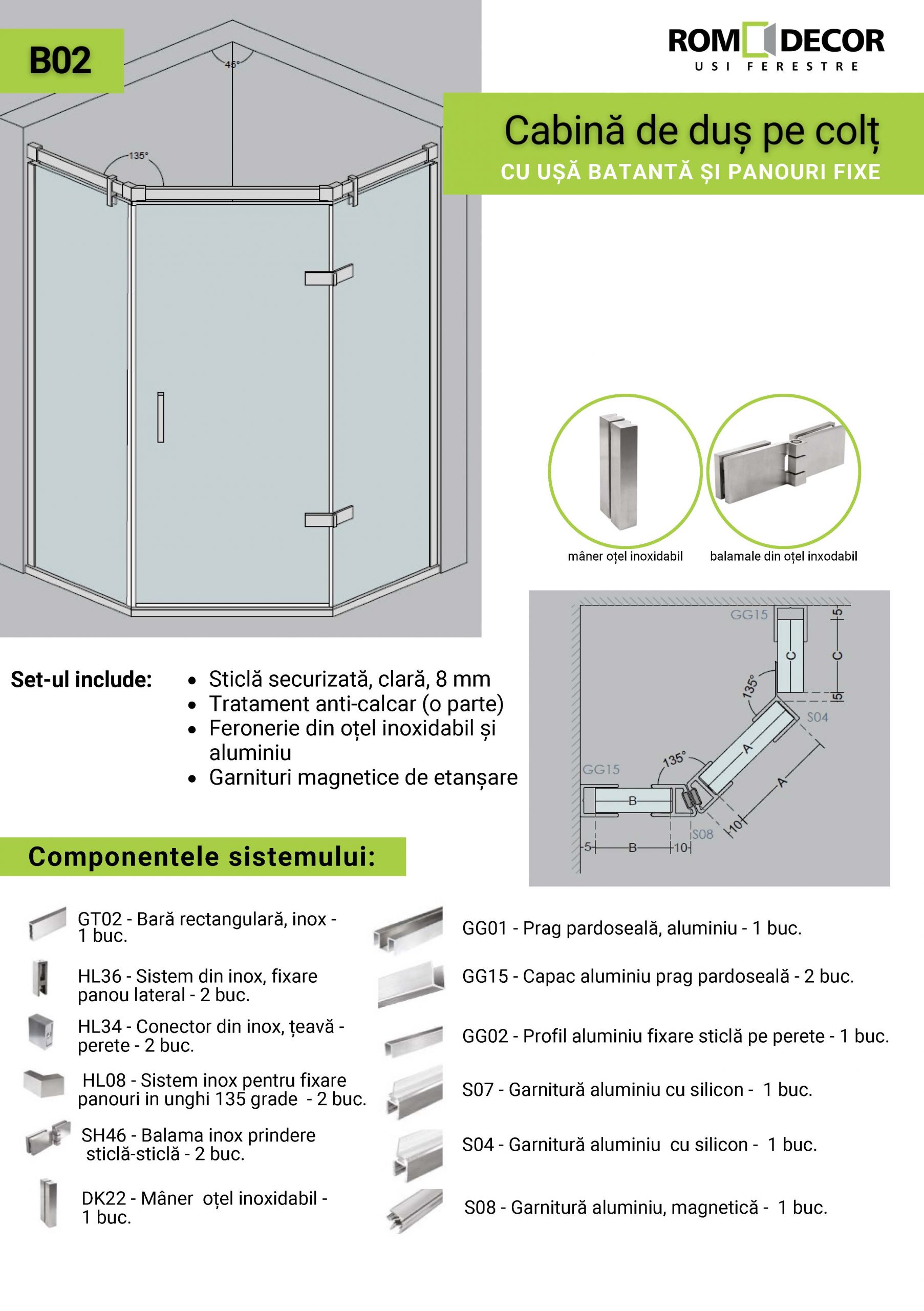 Cabina dus pe colt usa batanta panouri fixe B02 | Cabina dus DUSRMDB02