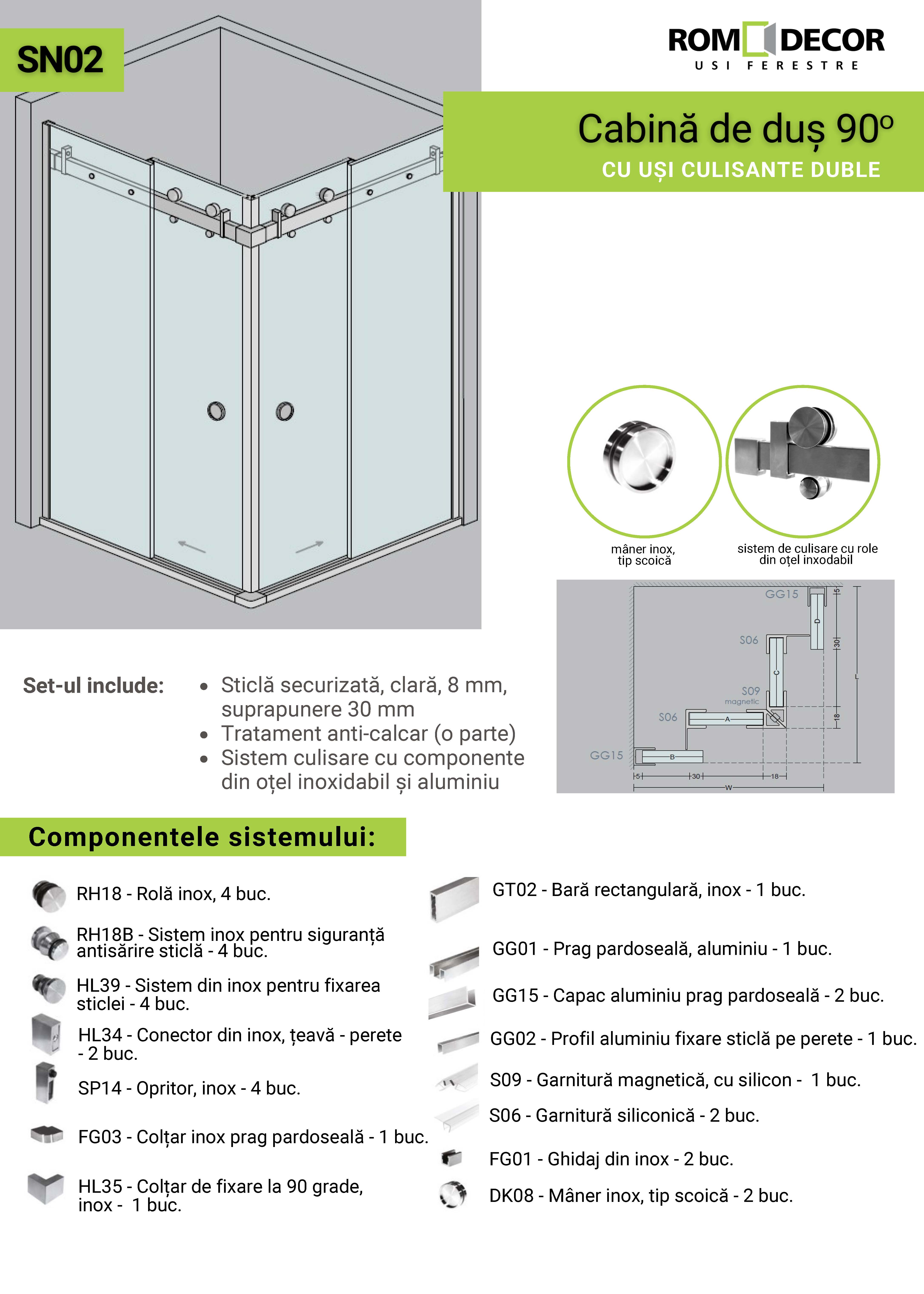 Cabina dus 90 cu usi culisante duble SN02 | Cabina dus DUSRMDSN02