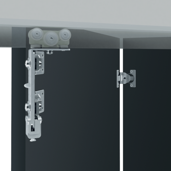 - Sistem de culisare conceput pentru dulapuri cu două uși pliabile.